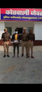 जहांगीरपुर :- जेवर कोतवाली क्षेत्र के जहांगीरपुर चौकी प्रभारी शिवप्रताप सिंह ने मुखबिर की सूचना पर टीम गठित कर जहांगीरपुर जट्टारी रोड पर भट्टे के पास घूम रहे अभियुक्त मोहित डांगर पुत्र बादाम सिंह निवासी ग्राम राघवगढ़ी थाना टप्पल जनपद अलीगढ़ को रोक कर तलाशी ली तो अभियुक्त के पास दो अदद अवैध तमंचों बरामद हुई।अभियुक्त को अवैध तमंचों के साथ गिरफ्तार कर माननीय न्यायालय के समक्ष प्रस्तुत किया गयाlगिरफ्तार करने वाली टीम शिव प्रताप सिंह, शिवम सचान ,कांस्टेबल अजय कुमार,कांस्टेबल धीरज को कोतवाल संजय सिंह और असिस्टेंट कमिश्नर ऑफ पुलिस सार्थक सेंगर ने प्रोत्साहित किया।